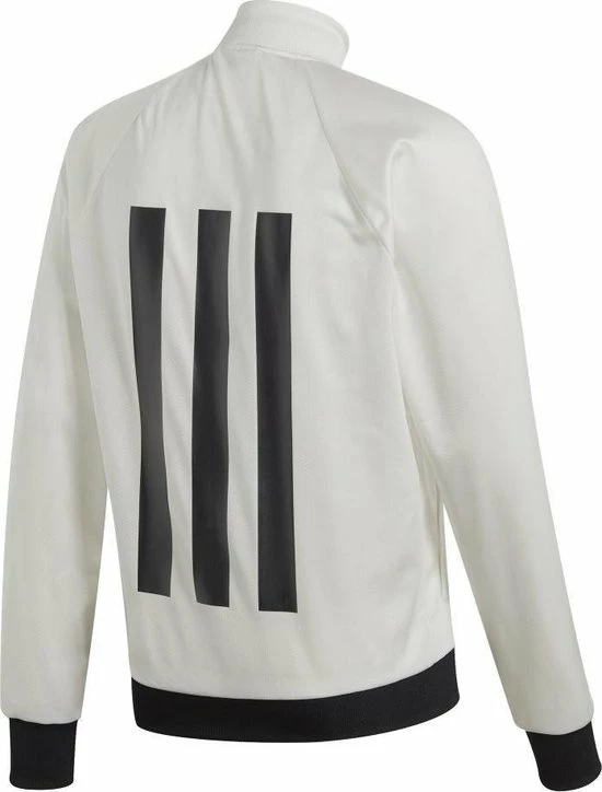 Jack heeft 3 verticale adidas-strepen over de rug. Voorzien van steekzakken met rits. Boord op heup en polsen.