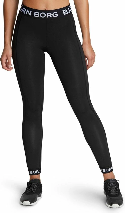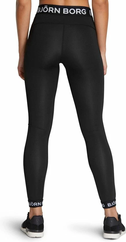 Slim-fit, stijlvol en zeer gestroomlijnd, dat is de high-performance Björn Borg Cora Essential Tights. Deze trainingsessential is gemaakt van gerecycled polyester en Hydro Pro materiaal dat vocht afvoert. Het is gestyled met een 5 cm brede elastische tailleband die aansnoerbaar is aan de binnenkant en een elastische logoband op het binnenbeen. Welke sport je ook beoefent, van comfort ben je altijd verzekerd. Het model is 1,82 m lang en draagt een maat 36.