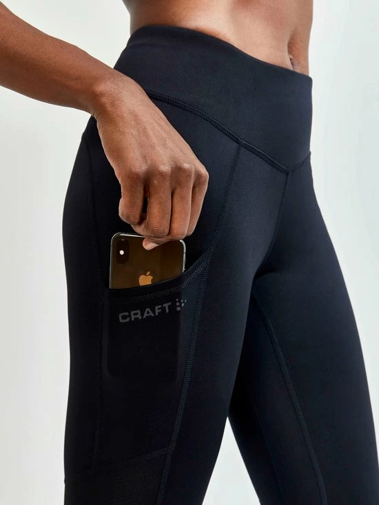 De Craft Adv Essence Tight is een van onze favoriete trainingsleggings. De leggig is gemaakt van comfortabel polyester en elastaan. De legging heeft een grote buitenzak op de pijp. De V-vormige tailleband biedt een optimaal draagcomfort aan deze trainingslegging. De mesh panelen op de achterkant bieden een uitstekende ventilatie.