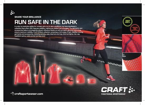 De Craft Thermo Tight Dames heeft de volgende eigenschappen: De Craft Brilliant Thermal Tights voor dames is een strakke hardloopbroek, geschikt voor gebruik ik koude omstandigheden. De hardlooptight heeft een elastische tailleband met aantrekkoord, een kleine zak aan de achterzijde en korte ritsen onderin de broekspijpen. Dit artikel is voorzien van reflecterende details, maar ook zijn enkele naden voorzien van ingestikte reflectie. De Craft Brilliance-lijn zorgt voor een verbeterde, 360 graden zichtbaarheid in het donker!
