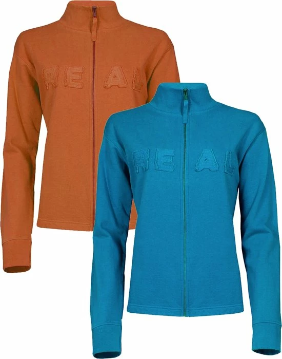 DUO-PACK Dames Sweatshirt van ons merk Thousand Islands is gemaakt van 100 % Katoen. Word per 2 verkocht. De Sweatshirt heeft lange mouwen met boorden, ook heeft de Sweatshirt een opstaande kraag en een deelbare rits. De Sweatshirt heeft op de borst een applicatie tekst van het zelfde stof. Boorden met elasthan voor meer draag comfort.