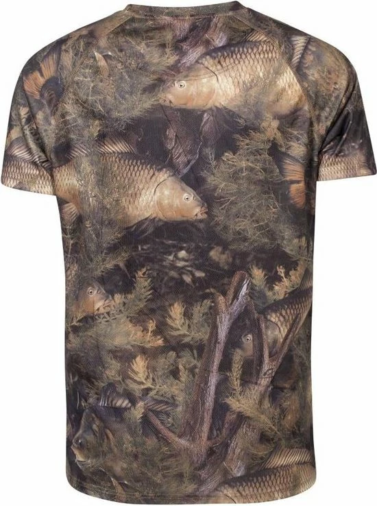 Een comfortabel, duurzaam en vooral in het oog springend Fishouflage T-shirt met een hoge kwaliteit Karper camouflage patroon! De korte mouwen zullen je lekker koel houden tijden de mooie zomerdagen aan de waterkant terwijl je jouw lijnen uitgooit. Maak je geen zorgen om de zon, want de UPF40+ UV bescherming zal je bovenlichaam beschermen. Het T-Shirt van 100% polyester is zeer duurzaam en bevat quick-dry (sneldrogend) zodat vocht snel opdroogt. Altijd handig tijdens de afwisselende warme en natte zomers!