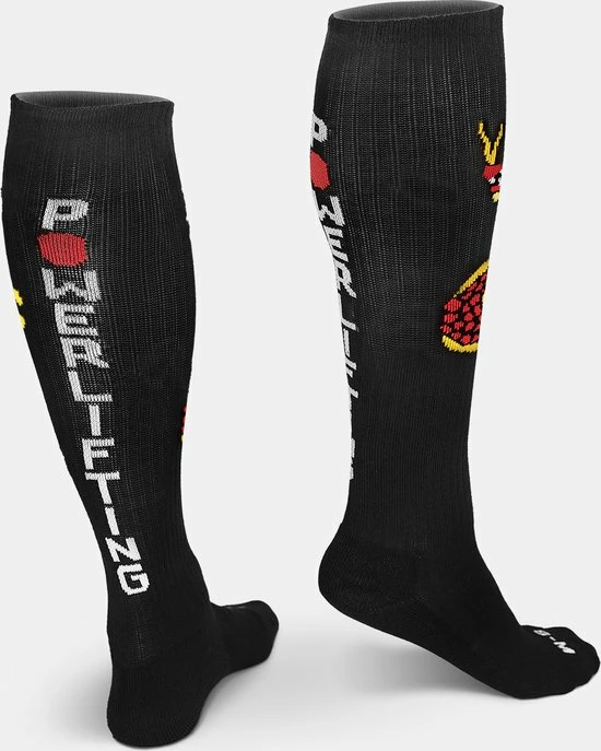 Deze hoge kwaliteit deadlift sokken beschermen je schenen tijdens het deadliften. Gemaakt in Nederland, met “Powerlifting” tekst op achterzijde.