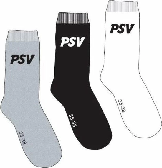 Merkloos PSV – Voetbalsokken – Unisex – 27-30 – Grijs;Wit;Zwart