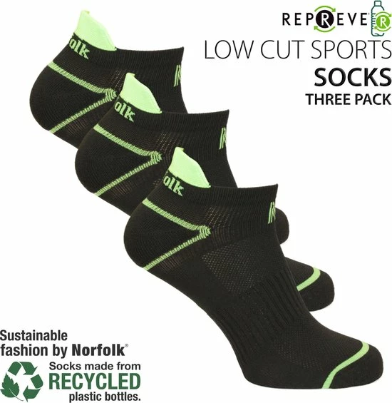 The Norfolk GREENLINE range of Low Cut Running Socks are manufactured from Repreve® yarn which is a sustainable eco-friendly fibre made from ocean-bound plastic bottles.