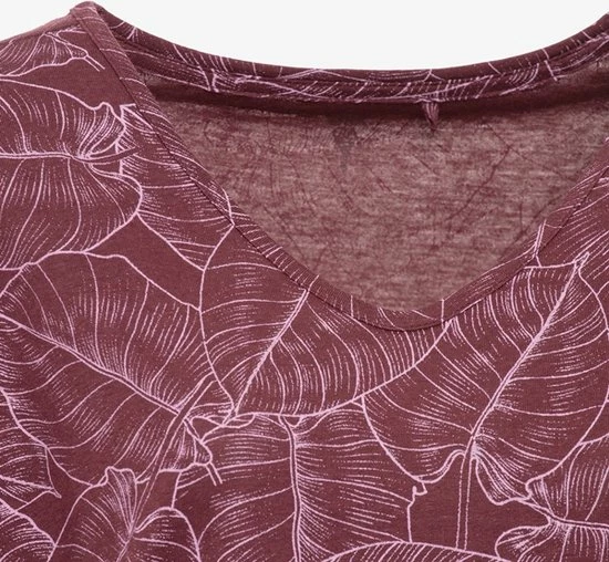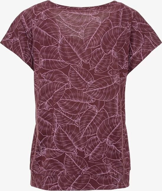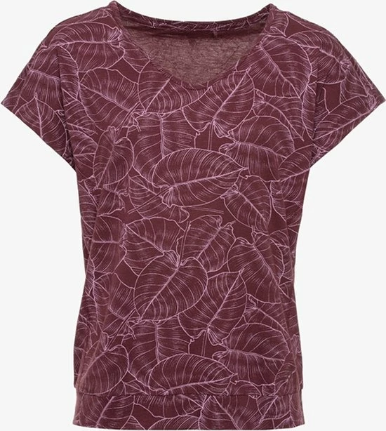 Bordeauxrood sport T-shirt voor dames uit de Osaga collectie. Voorzien van korte mouwen en een ronde hals. Het sportshirt is vervaardigd van sneldrogend materiaal en heeft een comfortabele, slimfit pasvorm zodat je vrij kunt bewegen tijdens het trainen. Ideaal voor fitness of hardlopen! Voorzien van een all over bloemenprint. Het sport T-shirt voor dames is gemaakt van 55% katoen en 45% viscose.