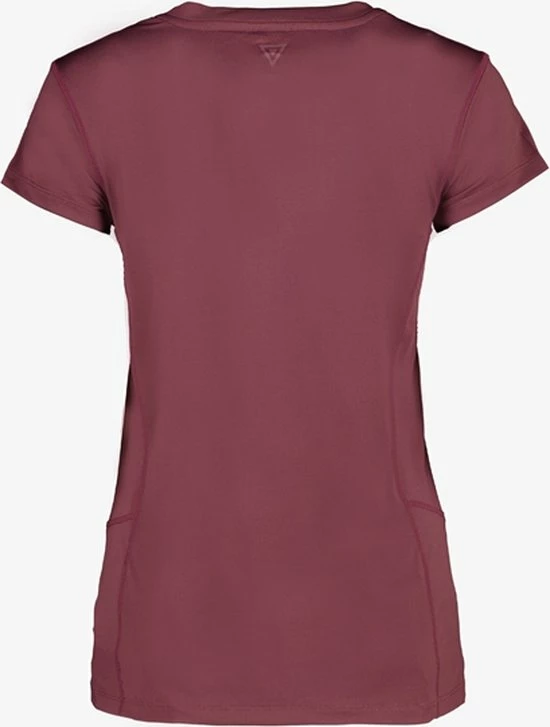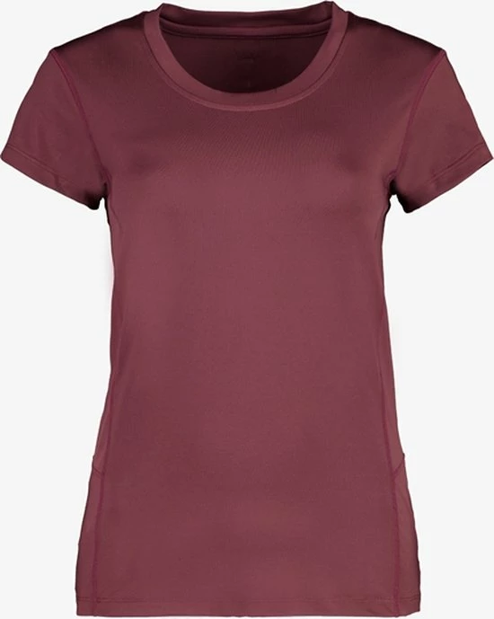 Bordeauxrood sport T-shirt voor dames uit de Osaga collectie. Voorzien van korte mouwen en een ronde hals. Het sportshirt is vervaardigd van sneldrogend materiaal en heeft een comfortabele, slimfit pasvorm zodat je vrij kunt bewegen tijdens het trainen. Ideaal voor fitness of hardlopen! Het sport T-shirt voor dames is gemaakt van 87% polyester en 13% elastaan.