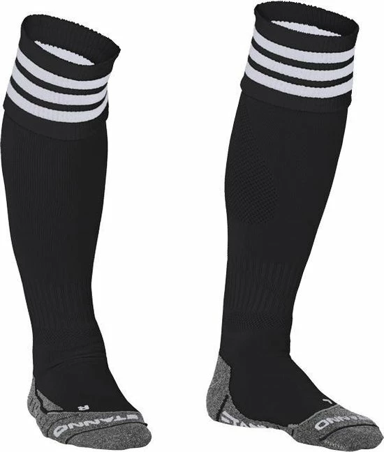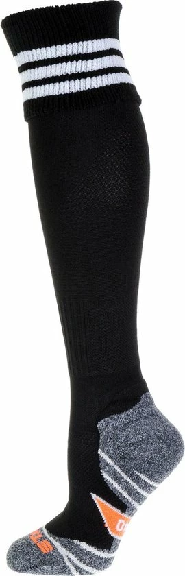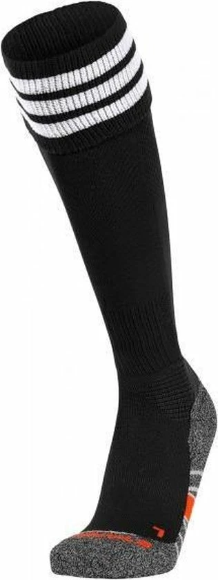 Ring Sock van Stanno in de kleur zwart, geschikt voor heren en dames. De Ring sock, verkrijgbaar in vele kleurcombinaties, is een hoogwaardige hockeysok gemaakt van polypropyleen, elastan, katoen en polyamide. De sok heeft een perfecte pasvorm, met een anatomische voet en een comfortabele zool en hiel van badstof. De elastische boord houdt de sok goed op z’n plek. De sok is naadloos gestikt voor optimaal draagcomfort.