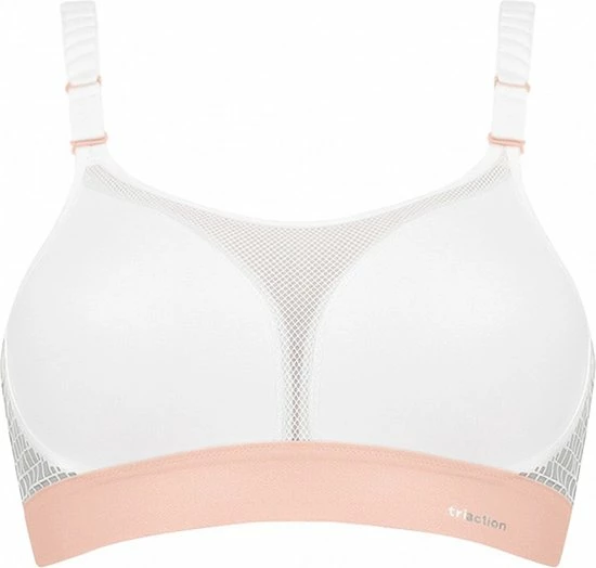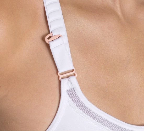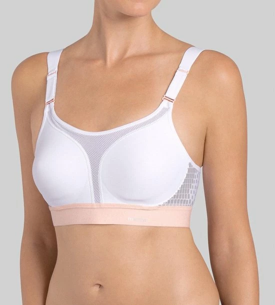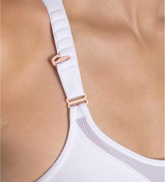 - Ondersteuning: Extreme ondersteuning. Mesh materiaal met zeer flexibel dubbel uitgevoerd weefsel voor flexibele ondersteuning. Vormende cups zonder voering omsluiten de borst stevig