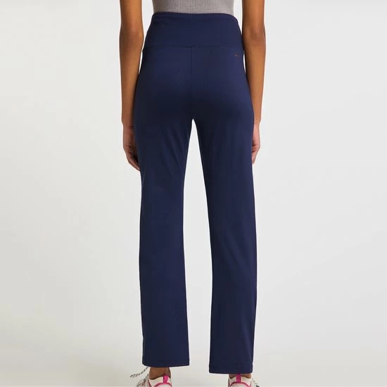 - Pasvorm: aansluitend, met uitlopende broekspijpen/ elastische tailleband, elastisch materiaal
